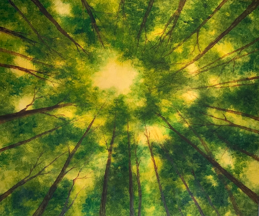 Another composition inspired by looking up, “Canopy” recalls the lush summer foliage near Lake George NY.