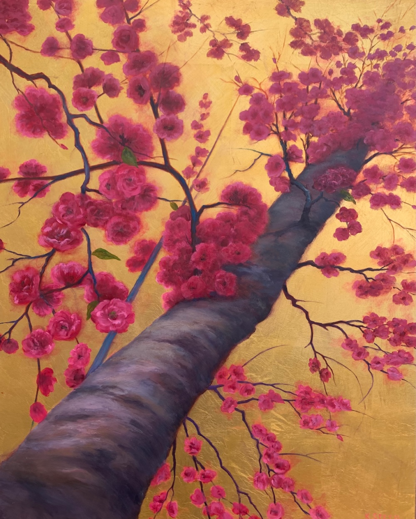 "Cherry Blossom Time" 2026 - Oil on gold leaf, 30 x 24