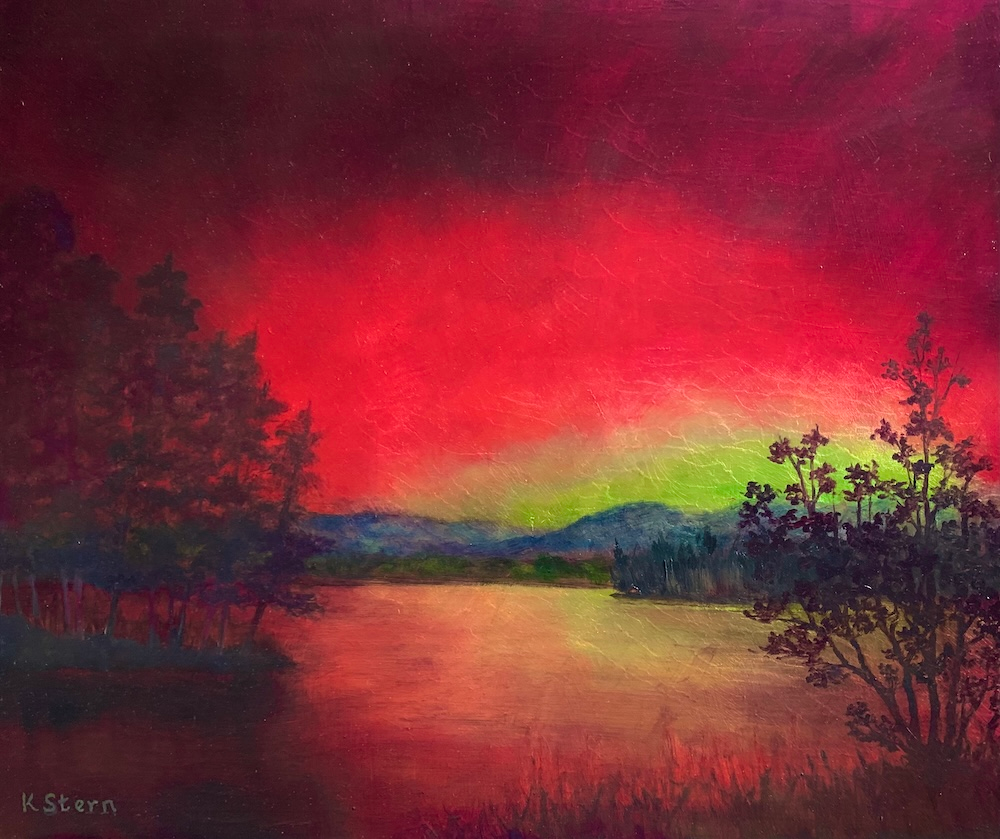 "Northern Lights, Lake James" 2026- Oil on gold leaf, 20 x 24